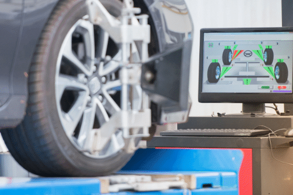 Professionell hjuljustering för optimal körsäkerhet.